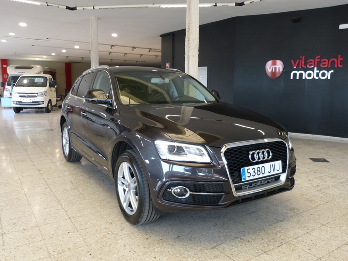 Audi Q5 Tdi Quattro 190 Cv S-Line Imprimir 22.900€ Características Carrocería:SUV / 4x4 Kilómetros:140.000 Fecha de matriculación:12/2016 Potencia:190 Cv Combustible:Diésel Color:Gris Metalizado Descripción Equipamiento: - 4WD- Faros de Bixenón con luz diurna de LED- Faros de niebla- Llantas S-Line de 19”- Sensores de aparcamiento delanteros y traseros- Portón trasero eléctrico- Cristales sobre tintados- Barras techo para porta equipajes- Retrovisores eléctricos, plegables y calefactables- Volante deportivo multifunción con levas- Sensor de luces- Asientos deportivos mixtos cuero y tela- Regulador de velocidad- Climatizador- Navegador- Bluetooth- Doble toma de tarjetas SD- Toma multimedia en la consola central- Freno de mano eléctrico con sistema Auto Hold- Audi Drive Select- Etc. Cambio de nombre y garantía incluidos en el precio.Con una entrada de 12.900€ sale una cuota de 187,30€ a 72meses con gastos de crédito y seguro de vida incluido. Financiación a su medida hasta el 100% del importe,pregunte por condiciones. Comercial 972 546 152Departamento comercial: Jose Maria o Carles Otros vehículos Mercedes Benz Clase C 300e Tec. Hib. EQ 313 Cv AMG Line 45.900€ Volkswagen Multivan The original Corta 2.0 TDI BMT DSG 6 plazas 43.900€ Mercedes-Benz GLC 220d 4 Matic AMG 31.500€ Ford Fiesta 1.5 EcoBoost ST PERFORMANCE PACK 200 Cv 5 pts 26.800€ Volkswagen Golf GTD Variant 184 Cv DSG 22.900€ Volkswagen Passat Variant Sport line DSG 150 Cv 22.900€ Mini Clubman Cooper Auto 136Cv 19.900€ HONDA Jazz 1.5 iMMD CROSSTAR Hibrido 17.900€ Peugeot Partner Pro Long 1000 Kg BlueHDI 3 Plazas 14.900€ Renault Kangoo II FG Professional 1.5 dCi 95 Cv 13.900€ Renault Kangoo Professional 1.5 dCi FG 90 Cv 9.900€ Bombardier Outlander Max 400 4x4 6.000€ Mercedes Sprinter 315 CDI L2H2 Toyota Proace 2.0D Confort Carga + Toyota RAV4 Advance 124 Cv MITSUBISHI Outlander 220 DID Motion 2WD 7 Plazas Mini Cooper SE
